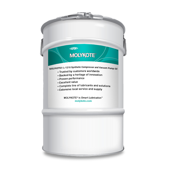 MOLYKOTE® L-1210 Synthetic Compressor and Vacuum Pump Oil is a polyalphaolefin (PAO) based compressor and vacuum pump oil with enhanced rust and oxidation protection.